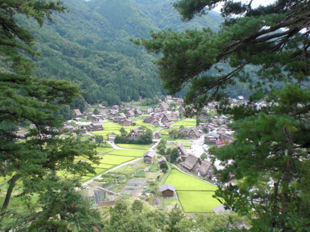 木々の切れ目から荻町集落を一望できる絶景ポイントに出ます。