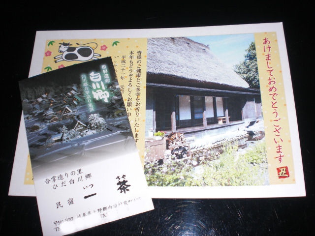 夏の白川郷旅行のときにお世話に宿泊先の一茶さんから年賀状が届きました。