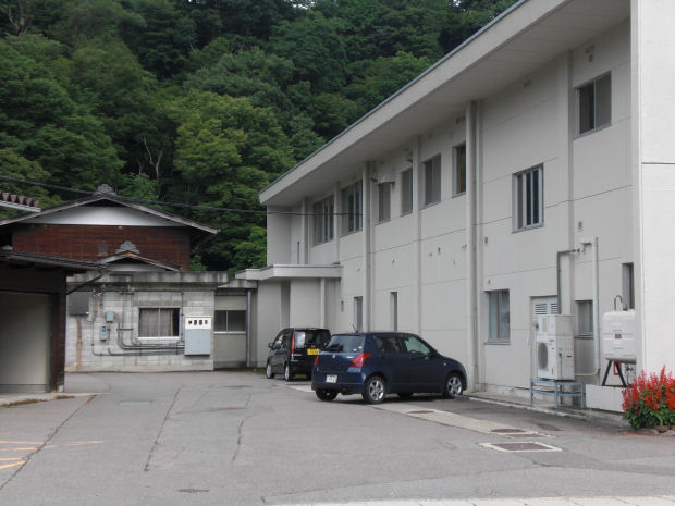 合掌造りを意識した外観になっている建物だったので