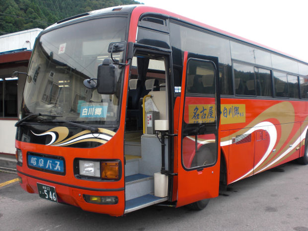 名古屋(9:00発)→白川郷(11:48着),白川郷(15:35発)→名古屋(18:31着)
